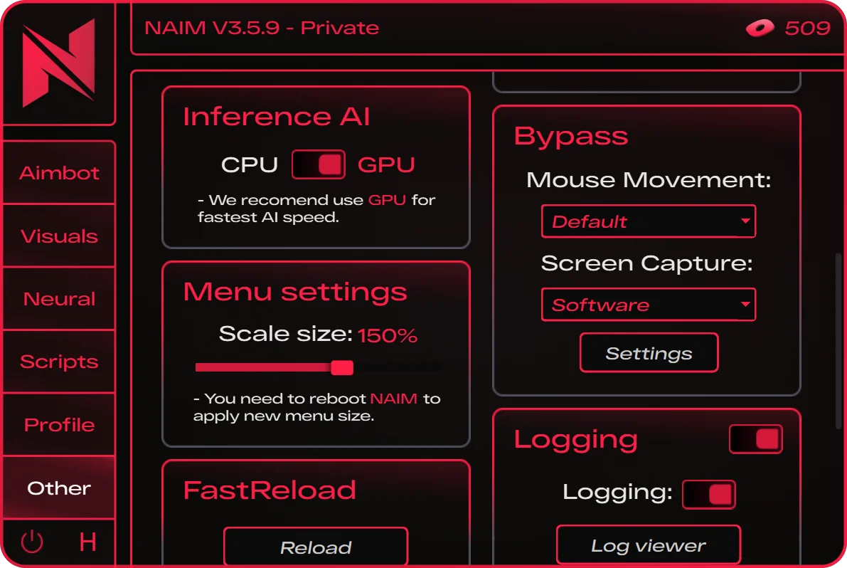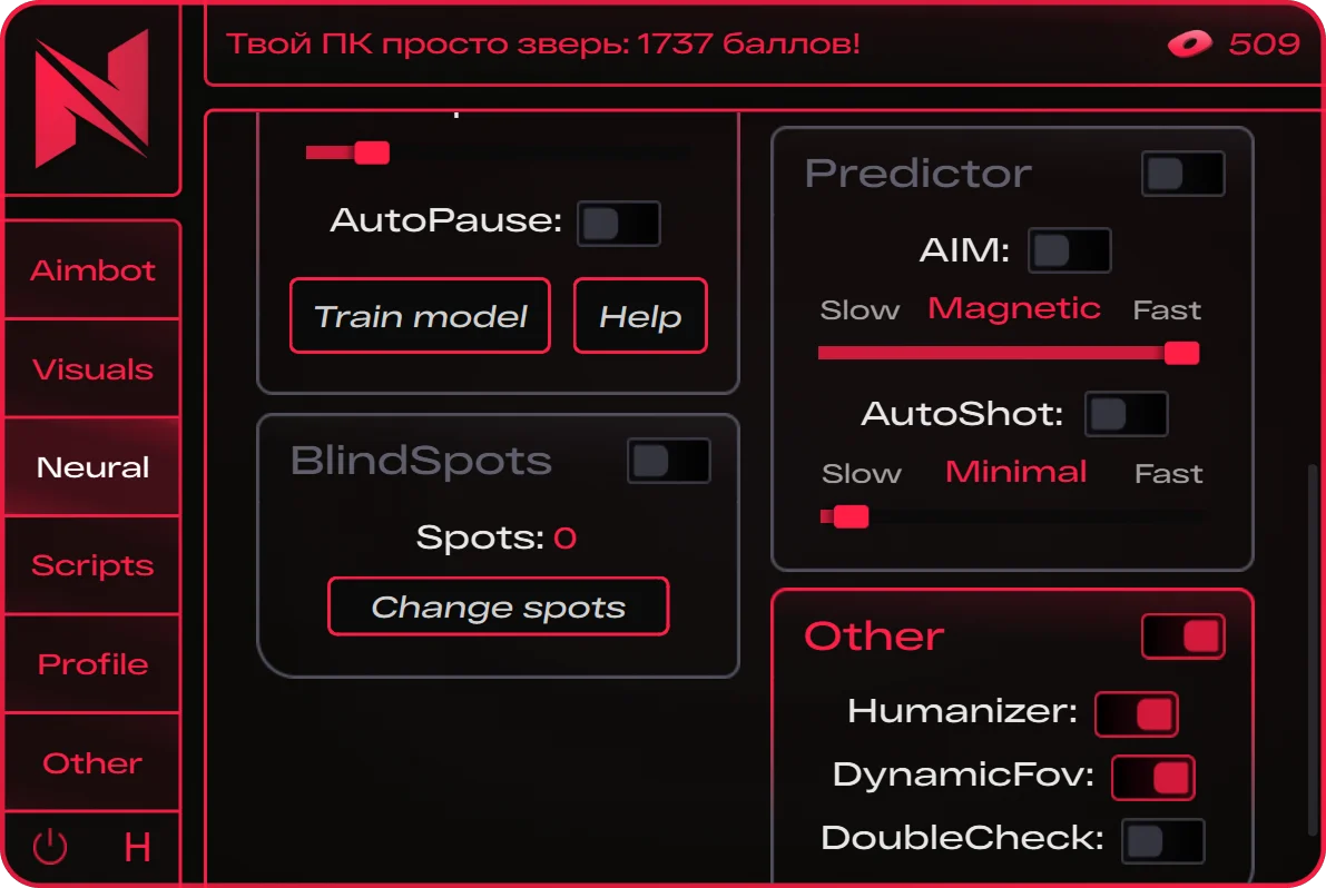 - FOV Neural/AimBot: Настройка FOV зрения нейросети и прицеливания в целом.