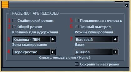 • Клавиша для удержания - клавиша при удержании которой будет работать триггербот апб релоадед