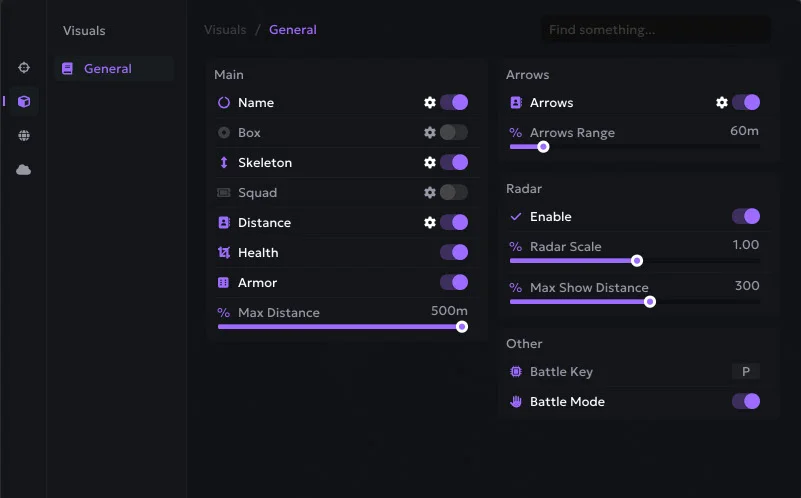 - - Для каждого объекта: Enable, Draw Dot, Draw Name, Draw Icon (для дронов), Color, Draw Distance, Limit Distance, Max Distance, Show In BattleMode