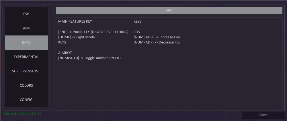 - Кнопка активации аимбота
