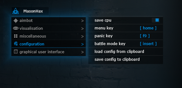 - Panic key / Установить клавишу экстренного отключения всего чита в игре
