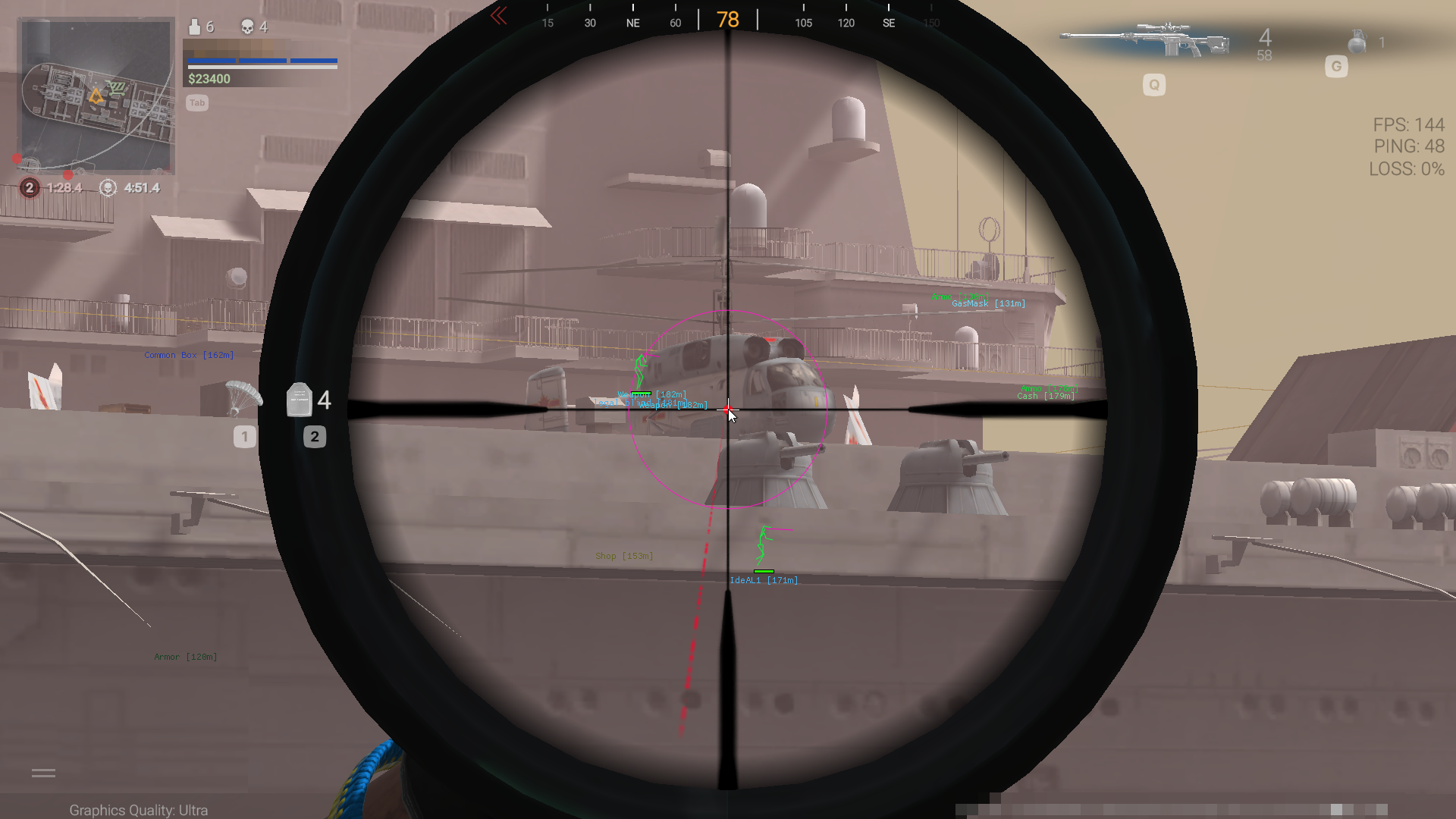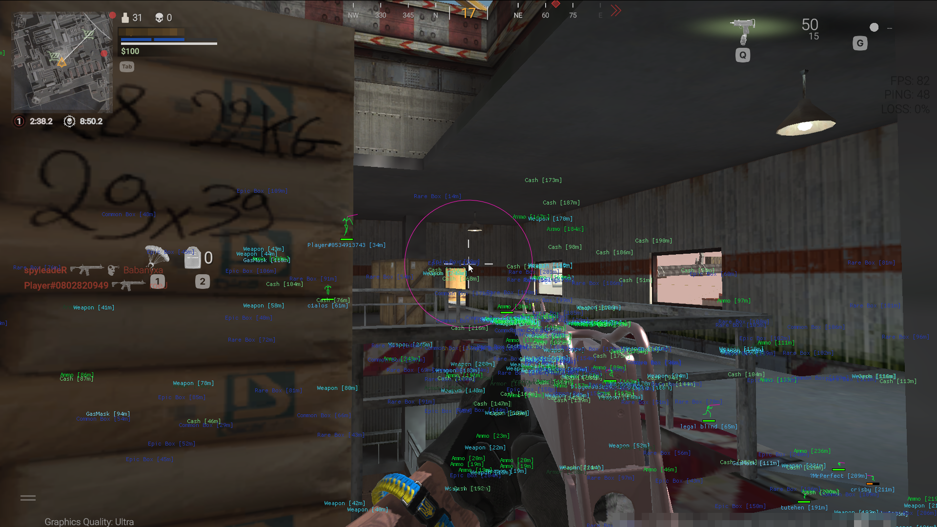 - Visual functions - Highlighting enemies, distance, health, boxes, etc