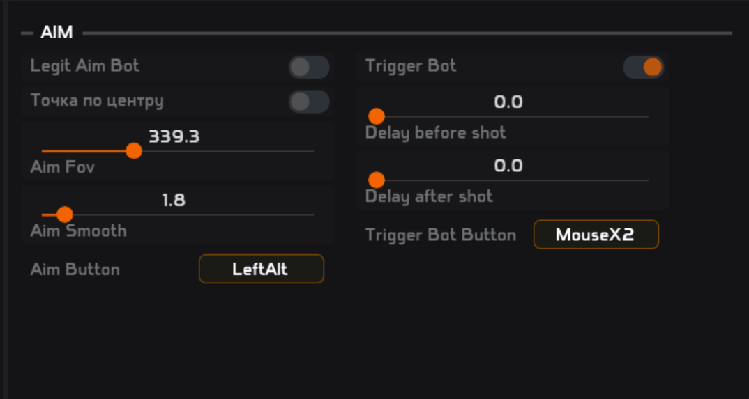 - Aim Fov - Регулировка поля зрения аима.