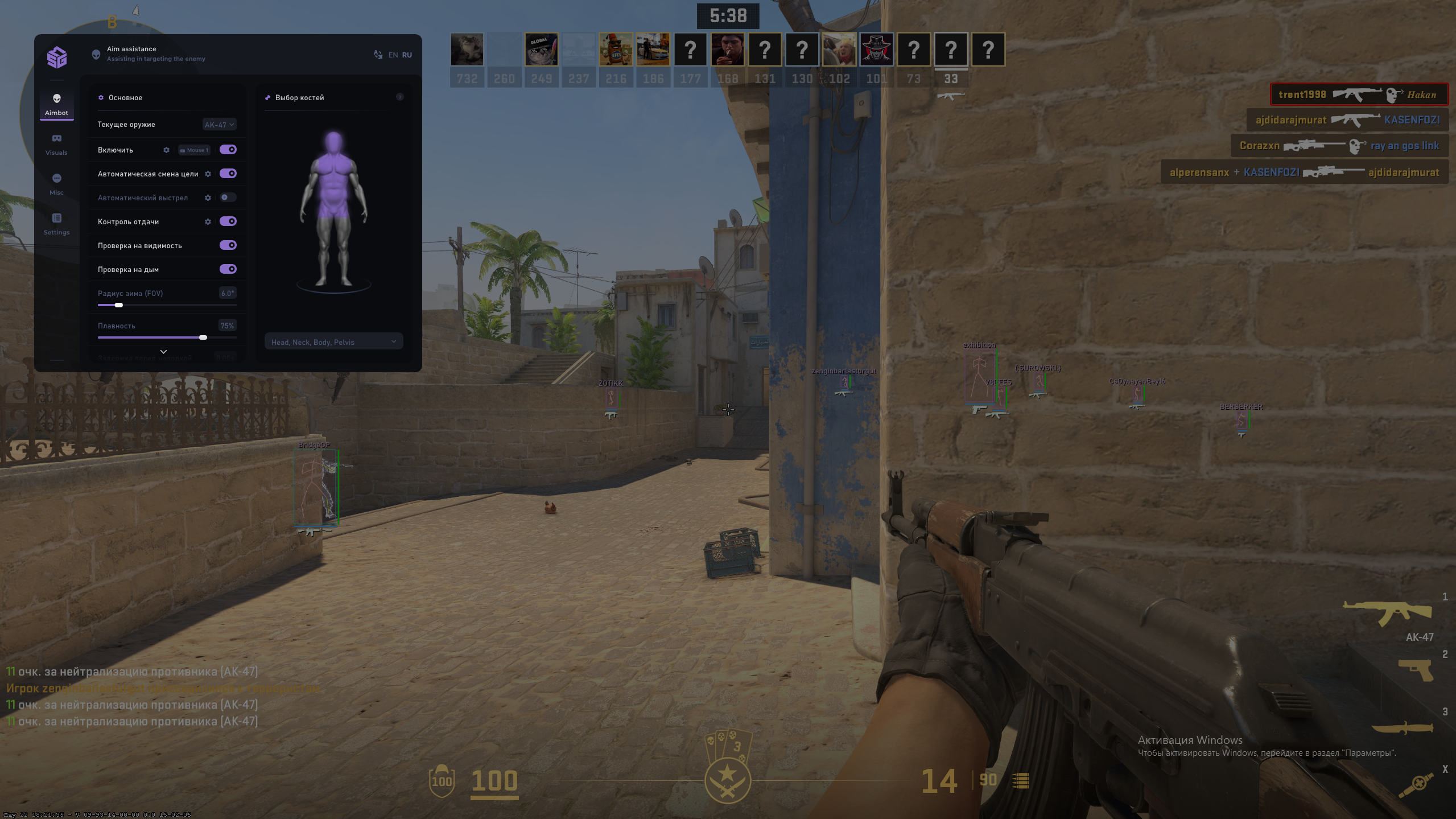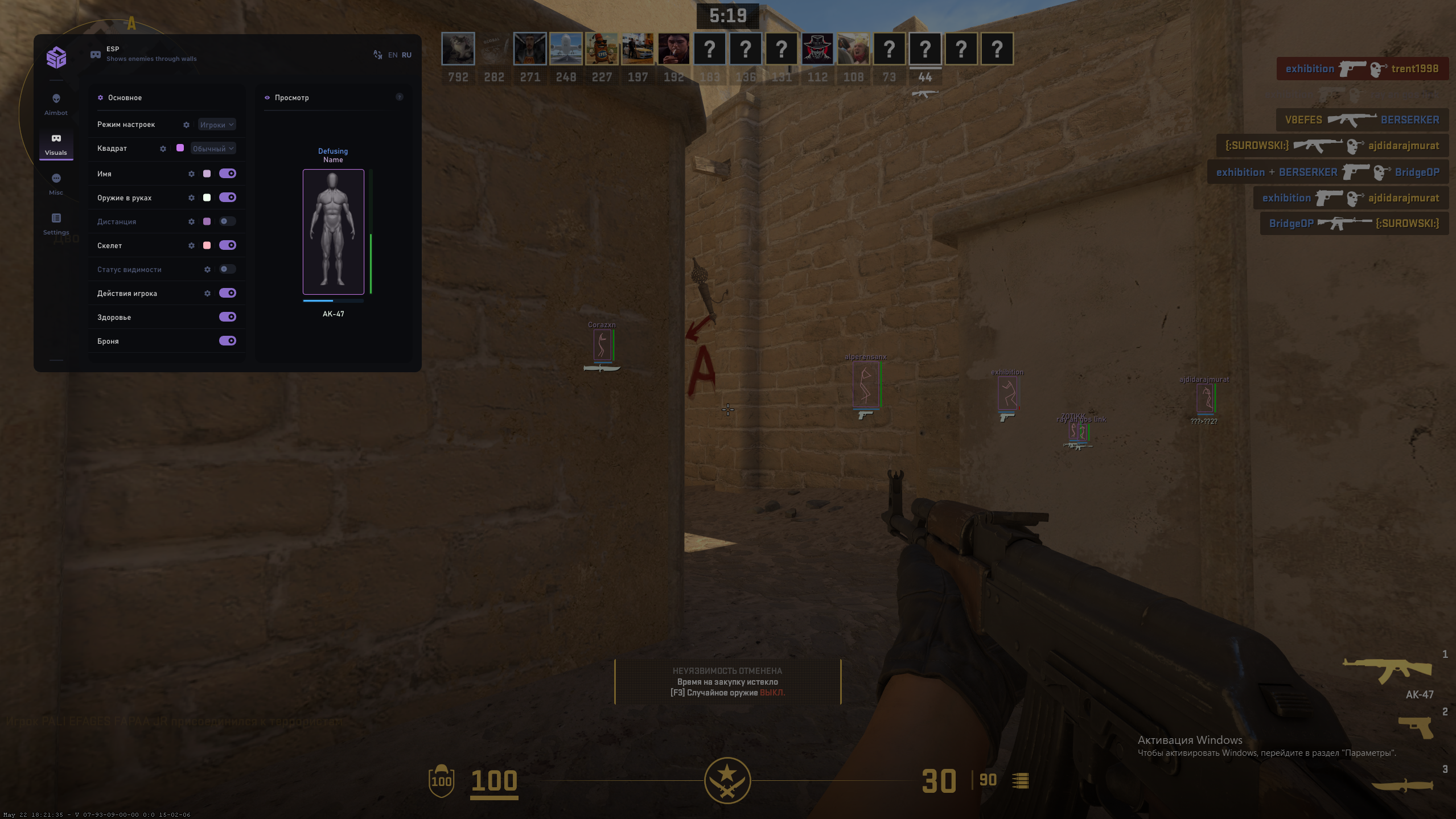 - Grenade (Box Mode, Name (Icon), Snapline, Distance) - Гранаты (Бокс, Имя (Иконка), Линия, Дистанция)