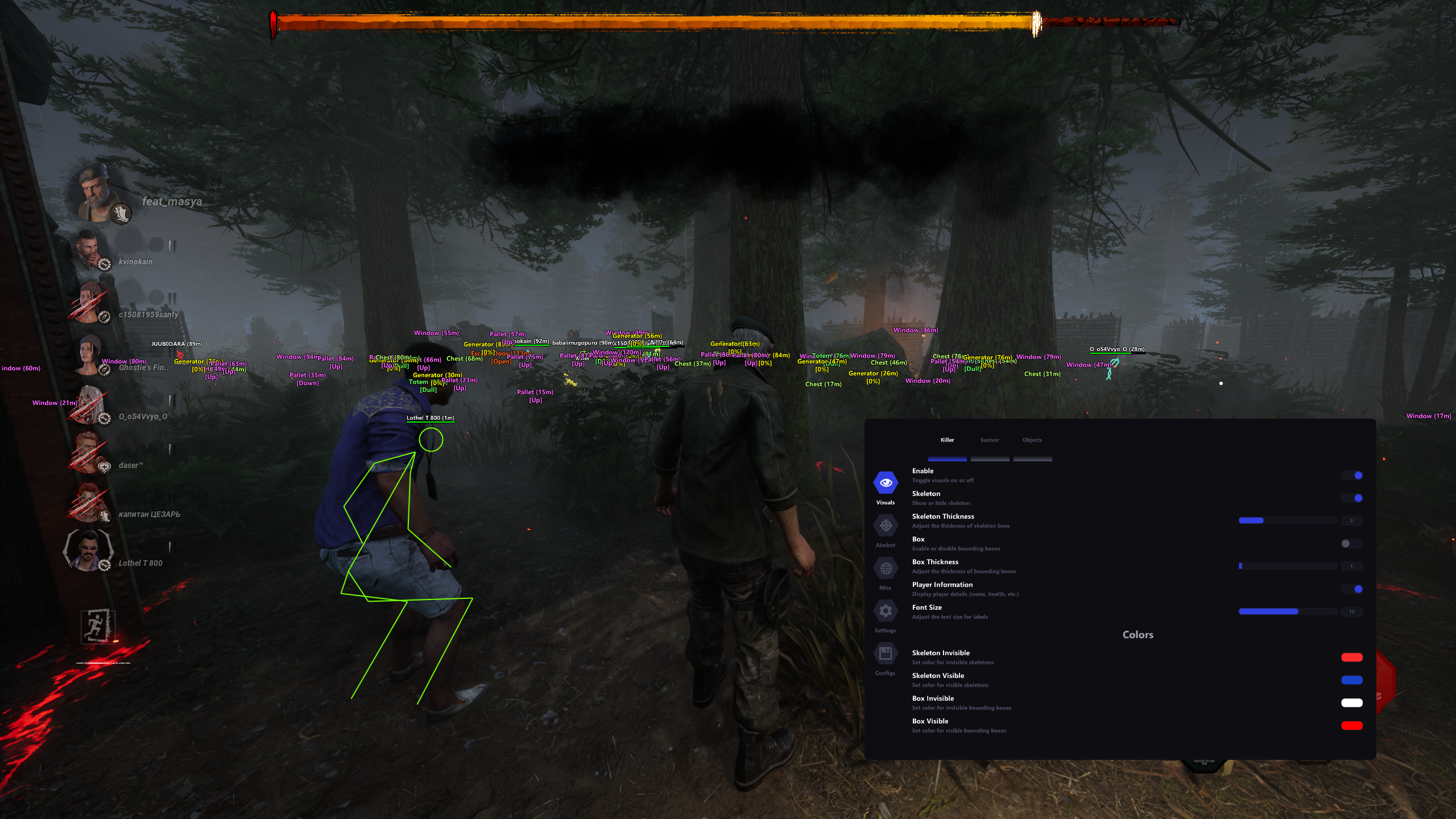 - [+] Draw Objects (Generators | Pallets | Windows | Lockers | Escape Doors | Hatches | Totems | Hooks | Chests)