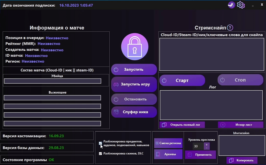 UNLOCKER TOOL - один из топовых провайдеров приватных читов для различных игр. Данный чит на DBD, зарекомендовал себя с лучшей стороны, регулярные обновления, хороший функционал, много положительных отзывов и все это по доступной цене!