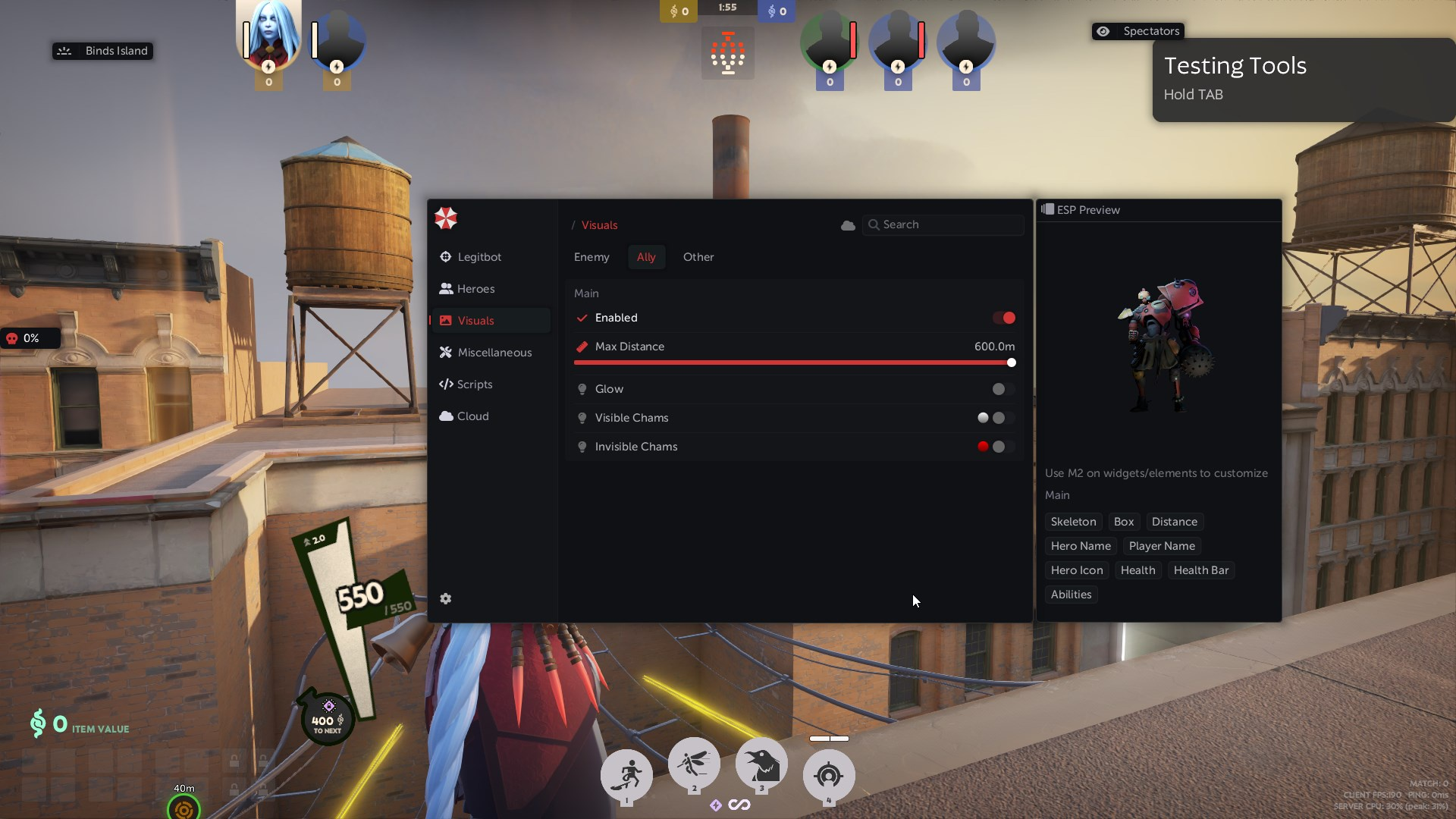 • Glow - Визуальная обводка свечением противника