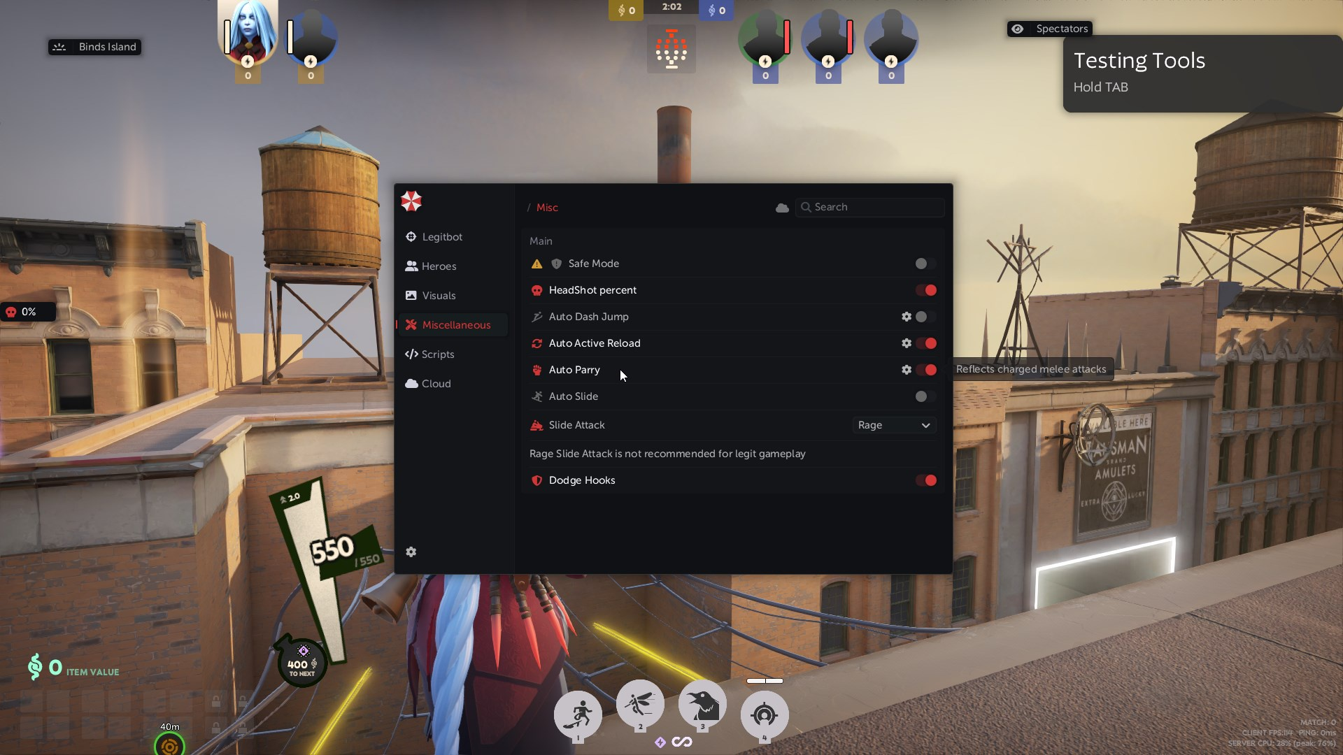 • Auto Parry - Функция в автоматическом режиме заблокирует ближнюю атаку врага.