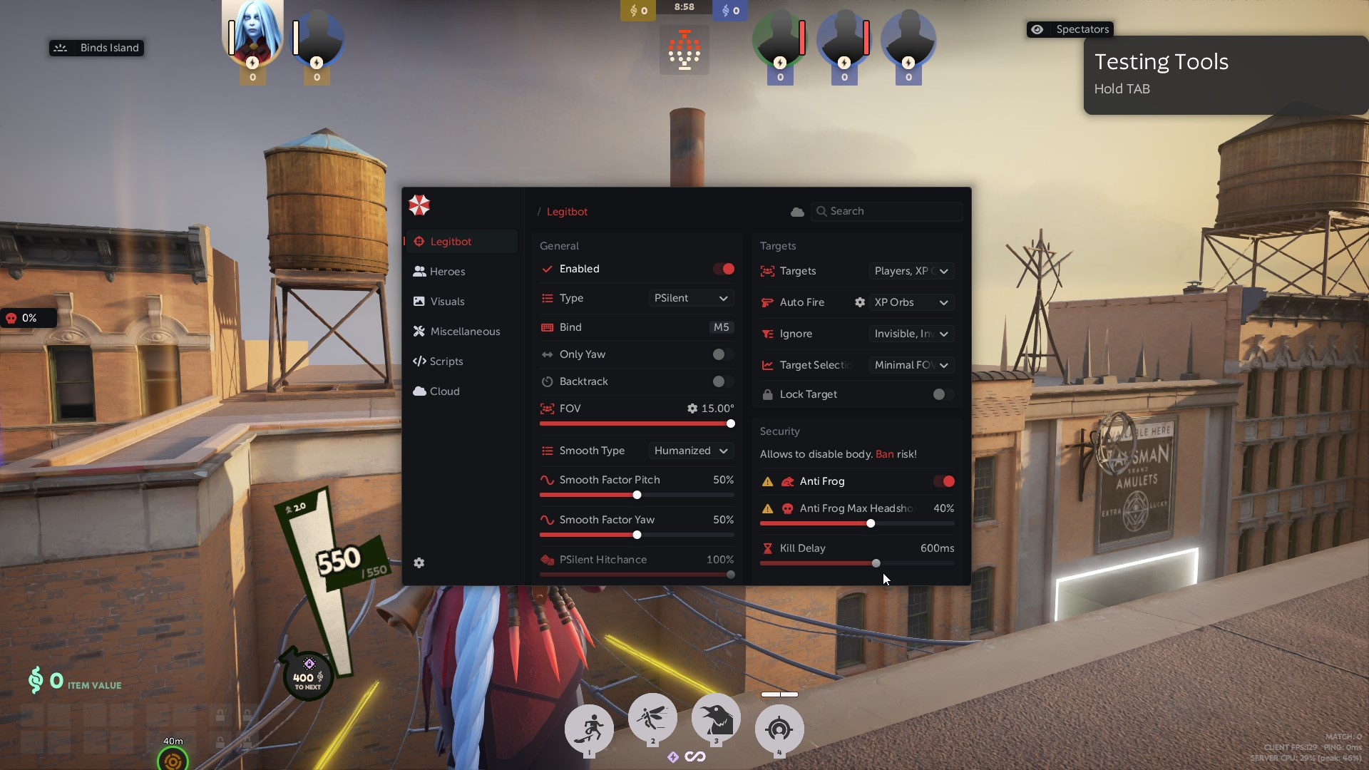 • Модуль помощи в прицеливании, добивании крипов или душ. Включив этот раздел, вы не оставите шанса вашим противникам, а ваша точность