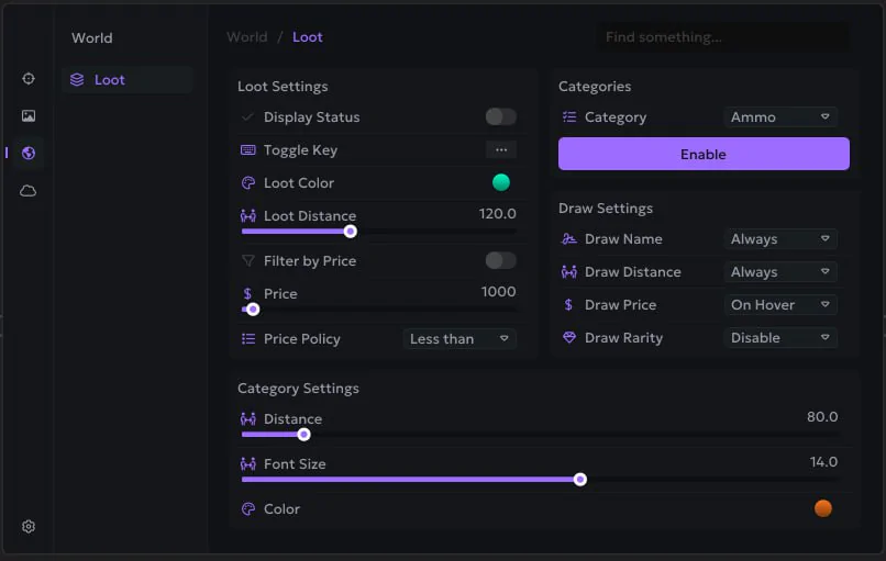 - Draw distance (slider)