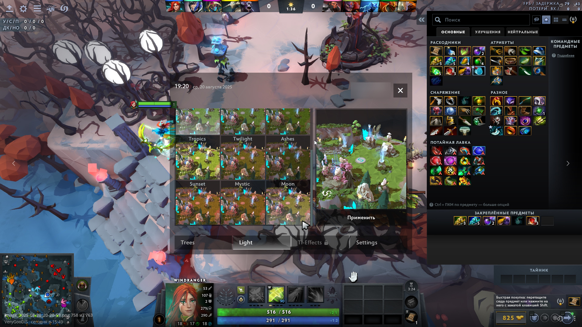 • Билдер показывает лучшие сборки на вашего героя, согласно текущей мете