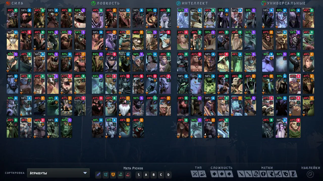 • MetaPicker предоставит вам информацию о самых лучших героях в текущей мете, на основе данных Dota Tracker.
