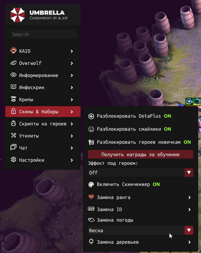 Umbrella Corporation - один из топовых провайдеров приватного ПО для различных игр. Данный софт на DOTA 2, зарекомендовал себя с лучшей стороны, регулярные обновления, хороший функционал, много положительных отзывов и все это по доступной цене!
