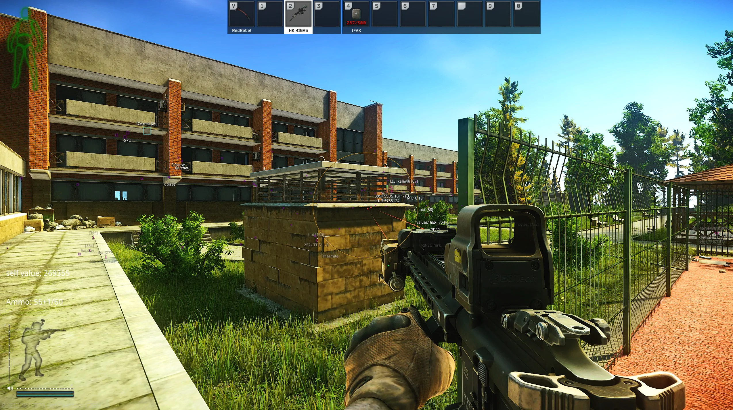 - Игрок Анти афк Высокий прыжок Бесконечная выносливость Мгновенное изучение предметов Мгновенный поиск предметов Мультипоиск (возможность лутать сразу несколько слотов) Флайхак Лутать сквозь стены Мгновенно двигаться в стороны Длинные руки Камера Изменение поля зрения Свободное видение Убрать забрало Изменение эффектов Среда Нарисовать лазер Отображать цены предметов Показать сколько стоит ваш инвентарь Показать счетчик боеприпасов Оружие Убрать раскачивание оружия Убрать отдачу Отключить движение рук Отключить эффект движения Быстрая перезарядка Отключить неисправности Мгновенное прицеливание в оружие Сила броска гранаты Все оружие стреляет автоматически