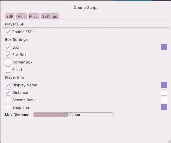 - CourierScript для Fortnite — отличный WH и точный AIM для уверенной игры