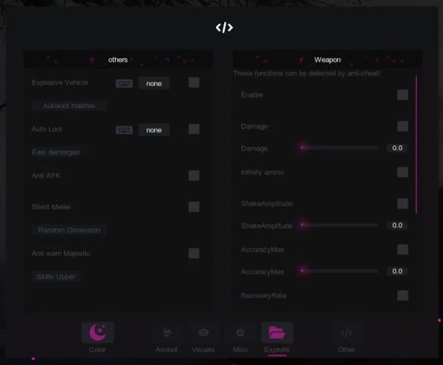 - Воспользуйтесь поддержкой AIM, WH, ESP для игроков, ботов, транспорта и брошенного оружия — всё для повышения эффективности и тактики.