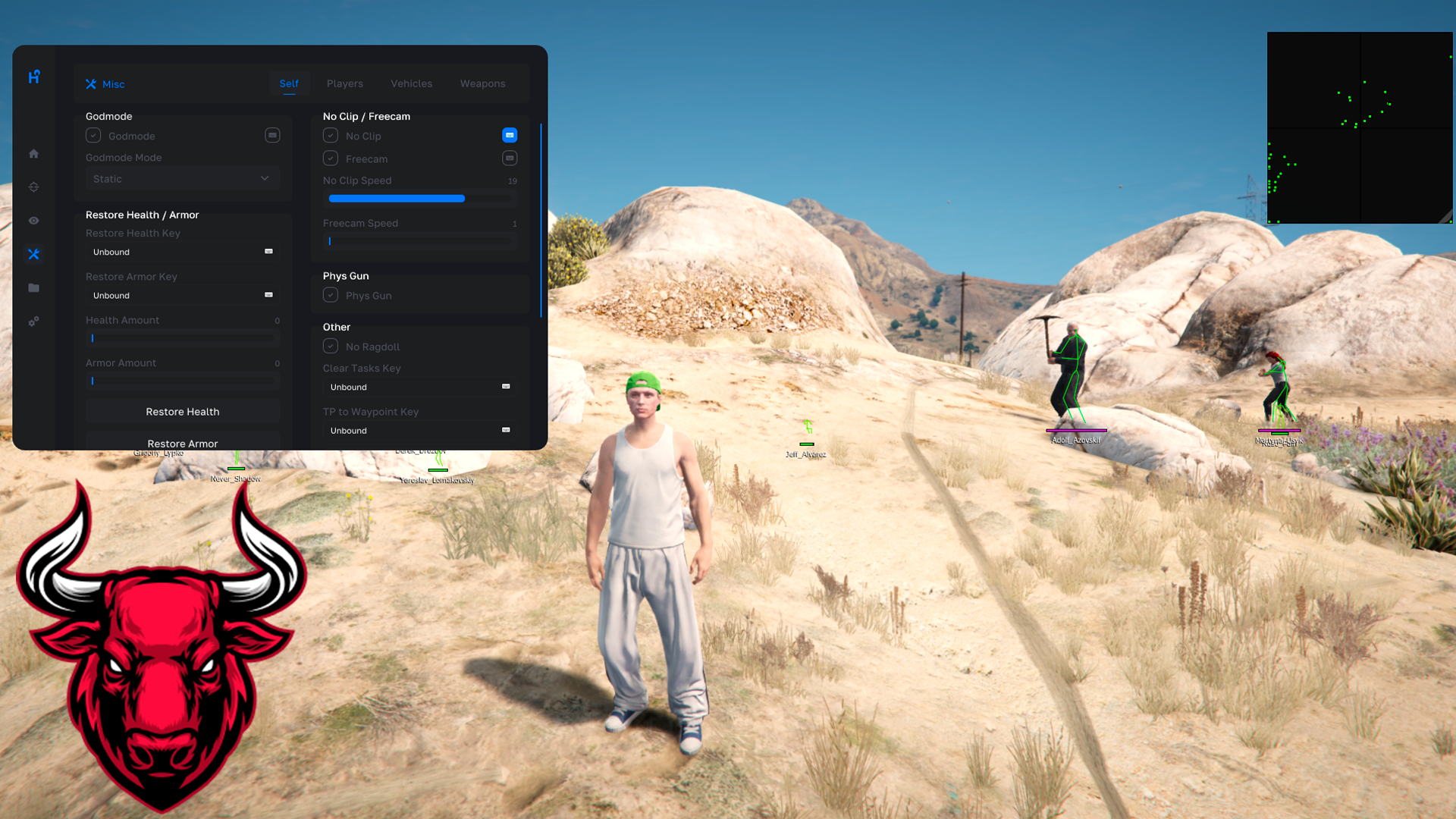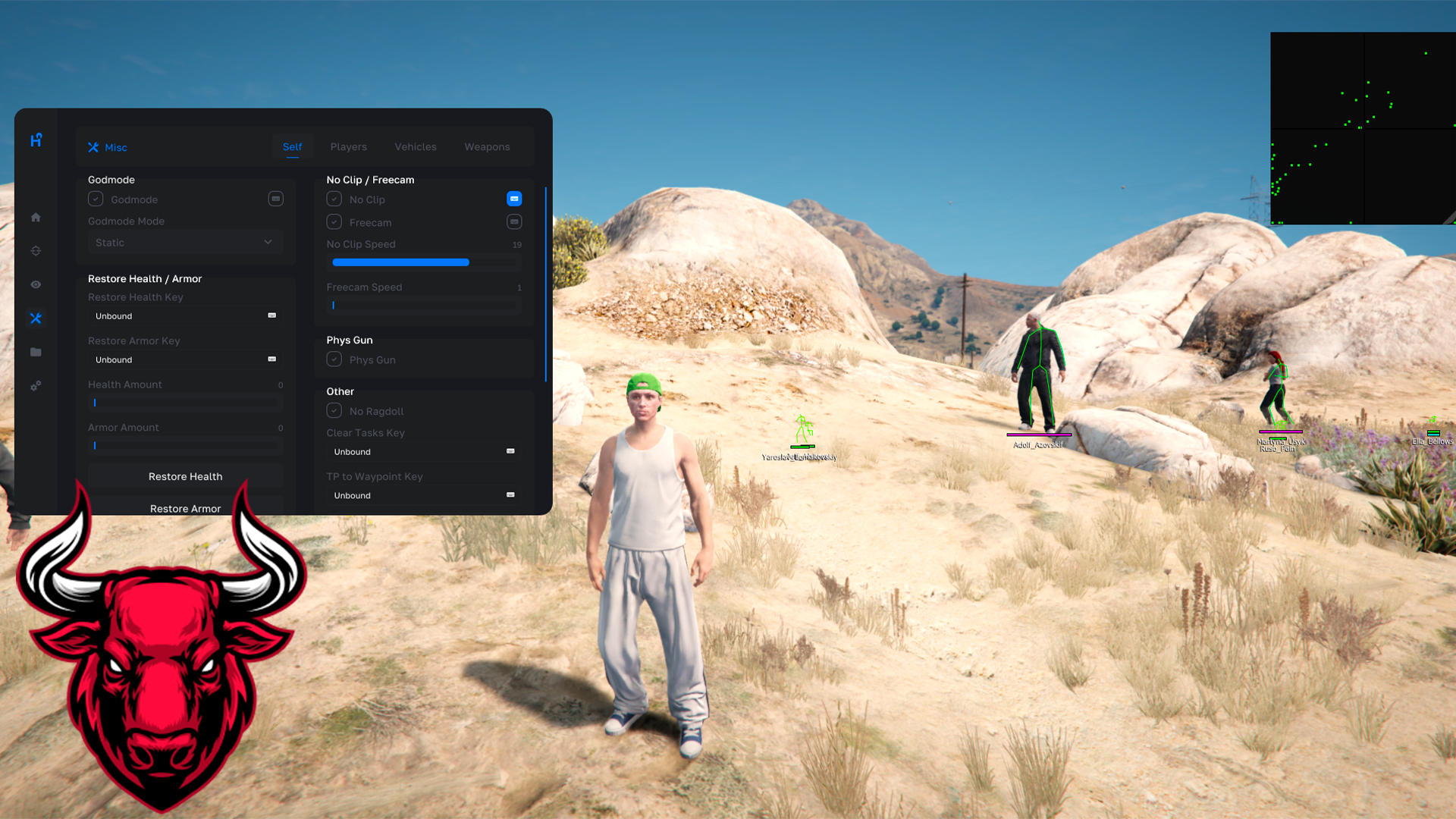 • Misc: Player: NoClip, Godmode, Semi Godmode, Clear Tasks, No Ragdoll, Suicide, Runspeed and Swimspeed modification, TP to Waypoint, Restore Health /