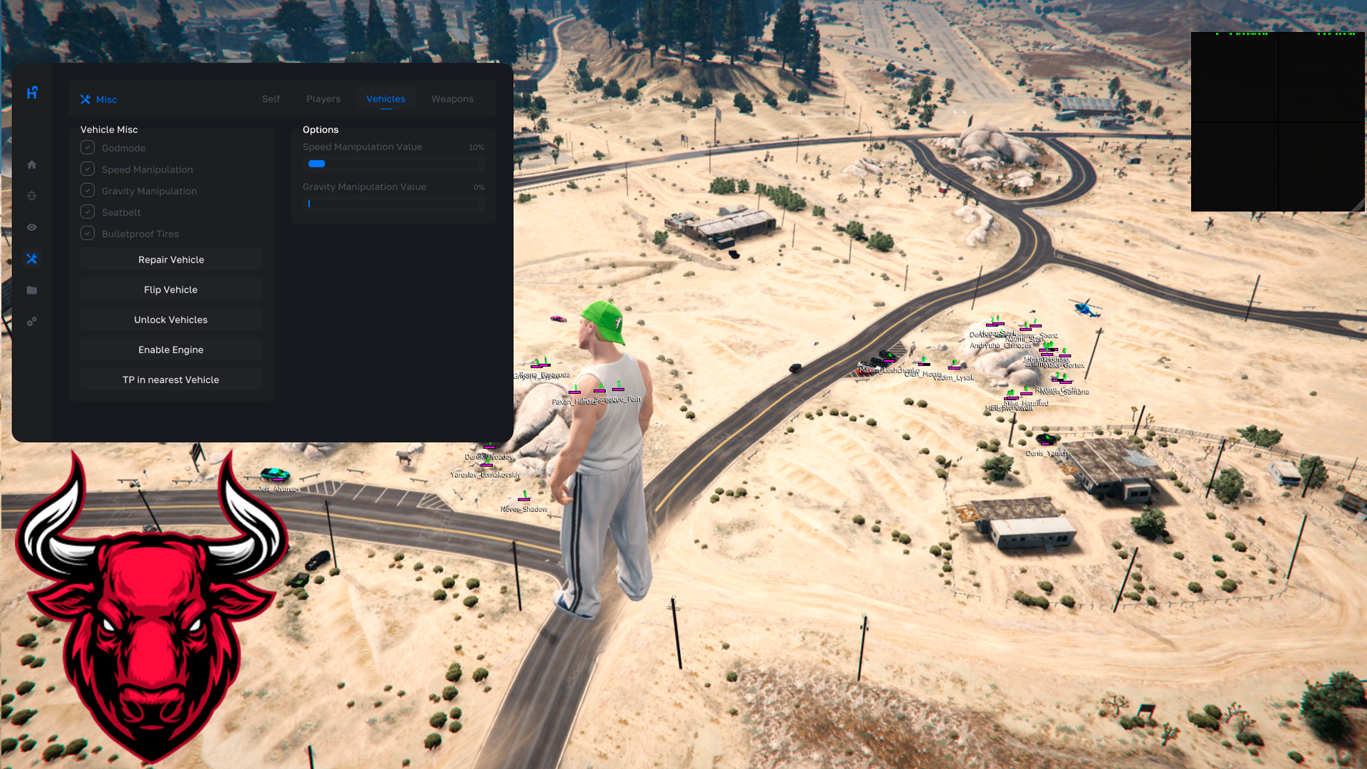 • Misc: Vehicles: Speed / Gravity manipulation, Fix Vehicle, Flip Vehicle, Turn on Engine, Unlock Vehicles and more