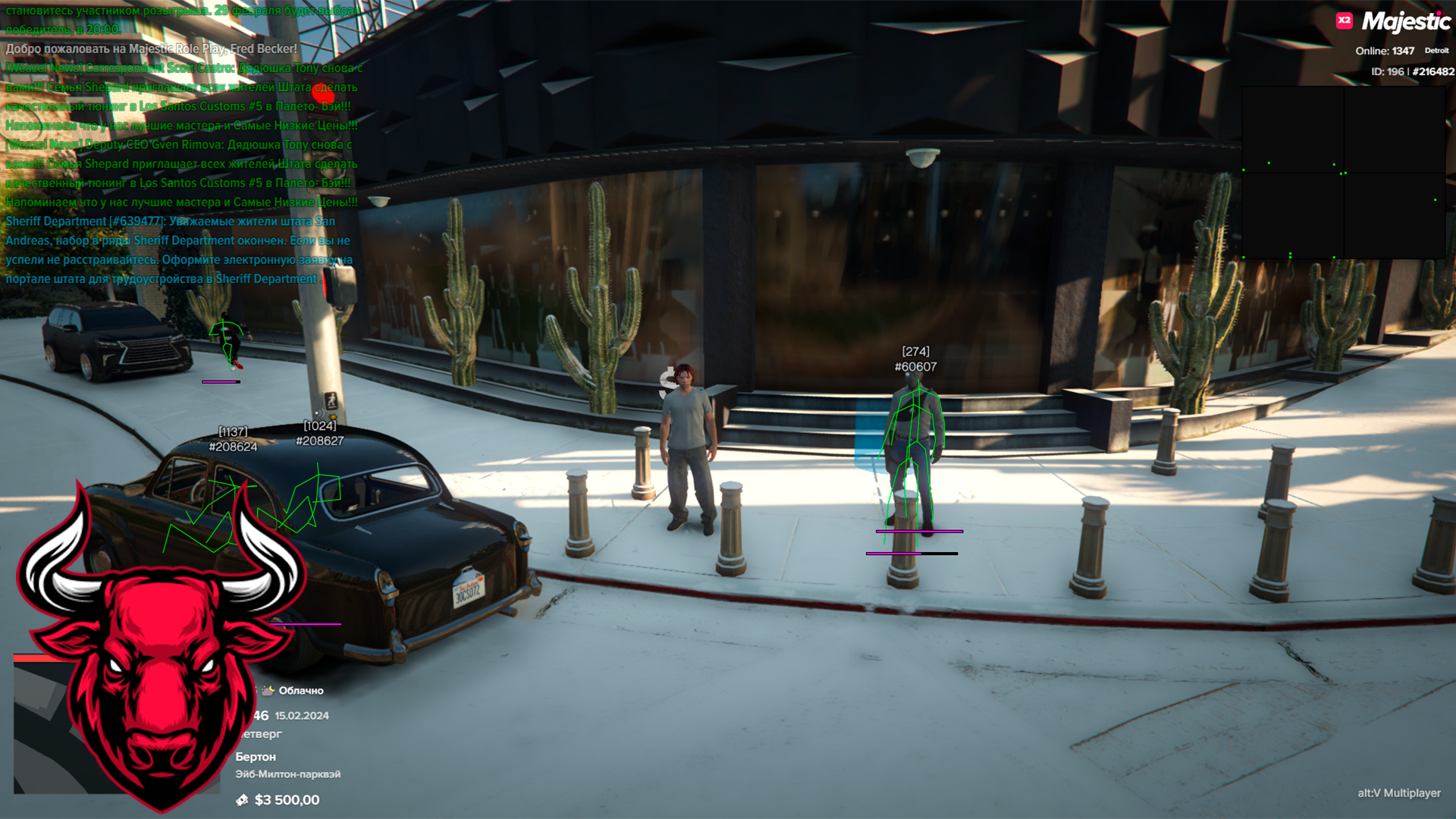 - ESP for: Player, Peds, Admins, Objects, Vehicles and Radar