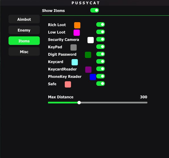 PUSSYCAT - один из топовых провайдеров приватных читов для различных игр. Данный чит на PAYDAY 3, зарекомендовал себя с лучшей стороны, регулярные обновления, хороший функционал, много положительных отзывов и все это по доступной цене!