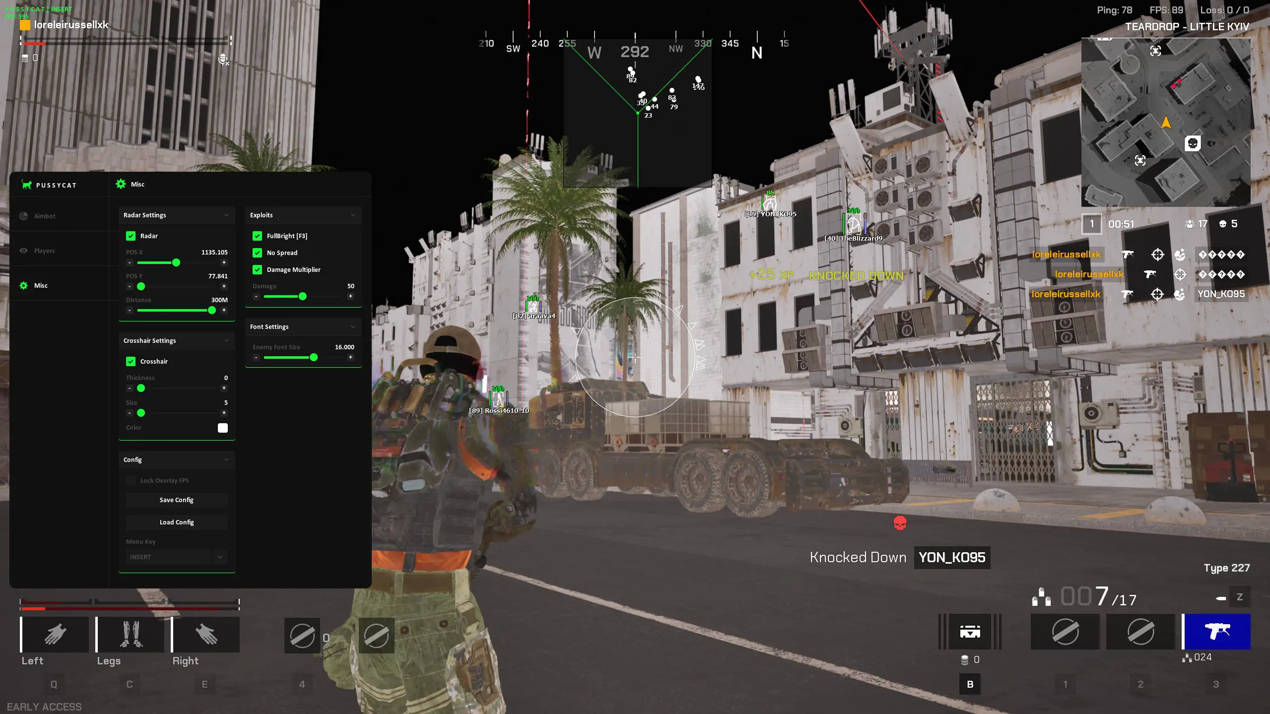 Pussycat - один из топовых провайдеров приватных читов для различных игр. Данный чит на Off The Grid, зарекомендовал себя с лучшей стороны, регулярные обновления, хороший функционал, много положительных отзывов и все это по доступной цене!