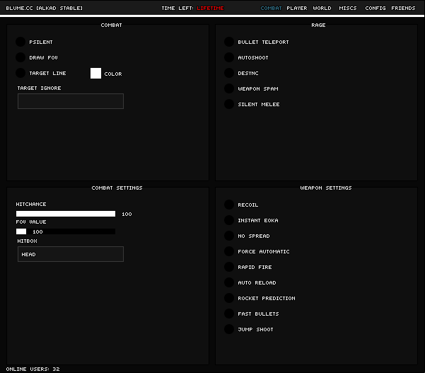 Blume Internal - Это внутренний (internal) чит-пакет для Rust Pirate, который инжектируется в игру для прямого доступа к её механикам, обеспечивая сверхмощные возможности без лагов. "Internal" гарантирует высокую производительность: читы работают внутри игры, минимизируя риски обнаружения благодаря встроенной маскировке.