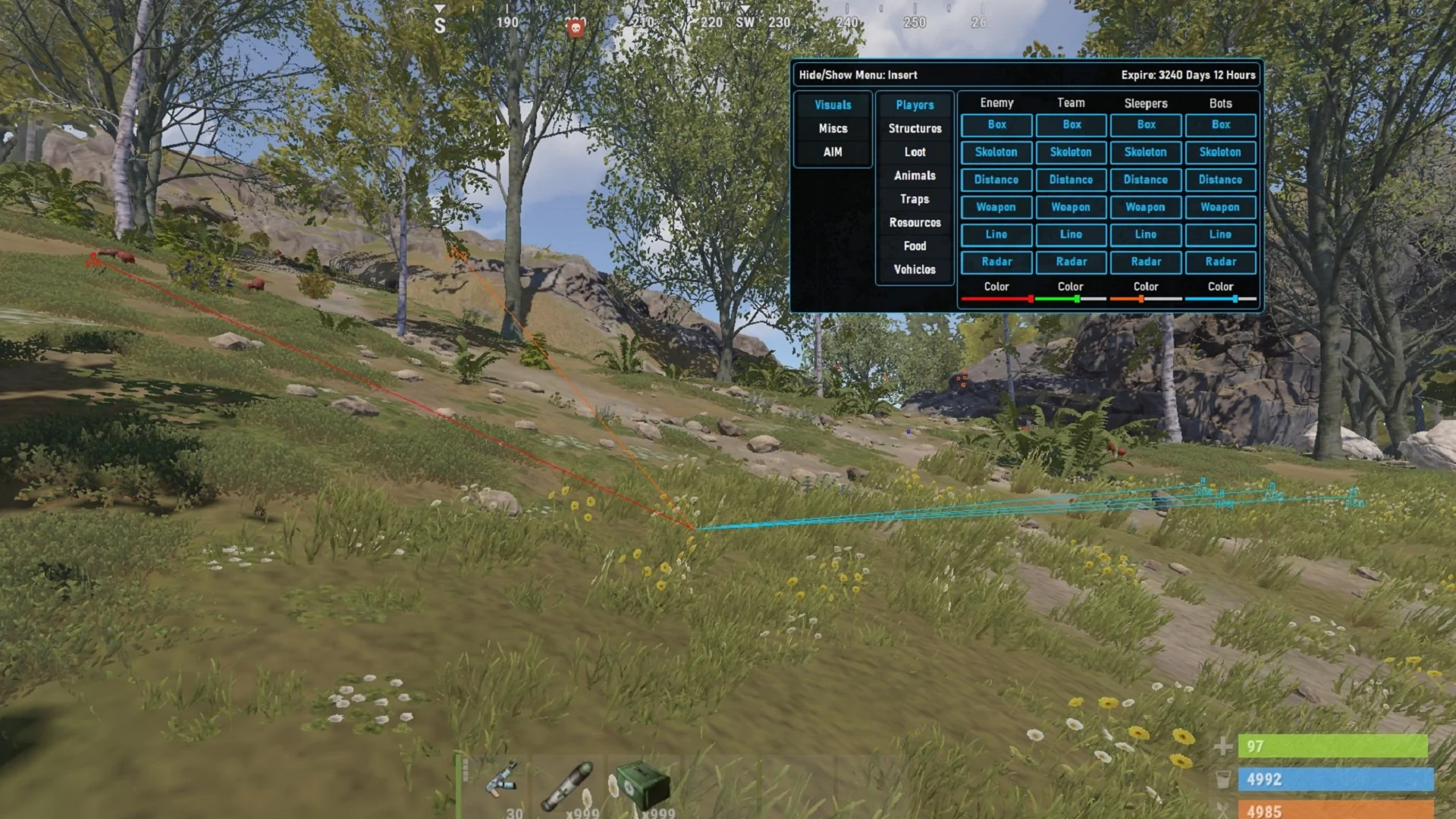 - Отображение скелетов противников/тиммейтов/спящих/ботов