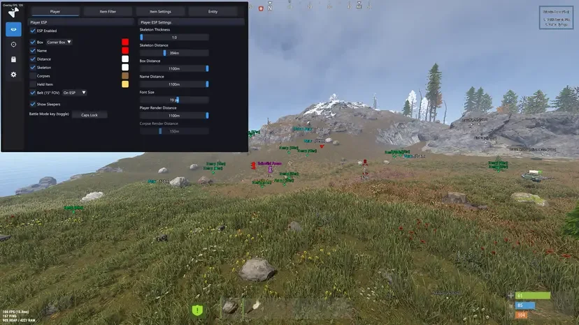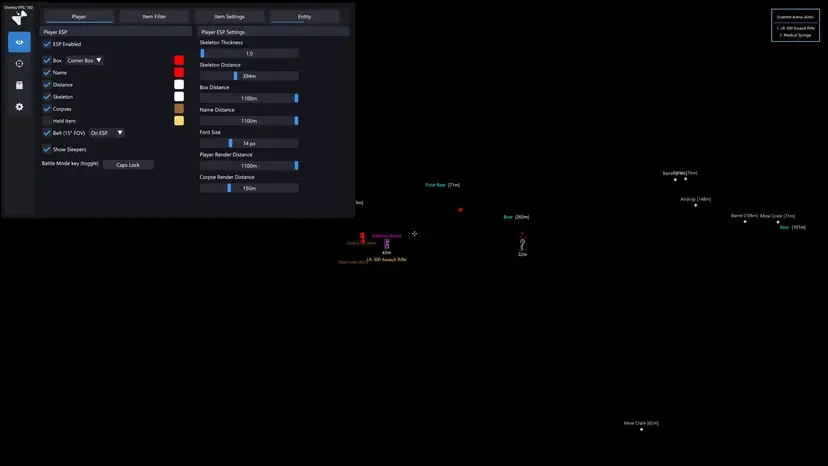 - Поддержка ESP для врагов, ботов, трупов, транспорта и брошенного оружия — всегда оставайтесь на шаг впереди.