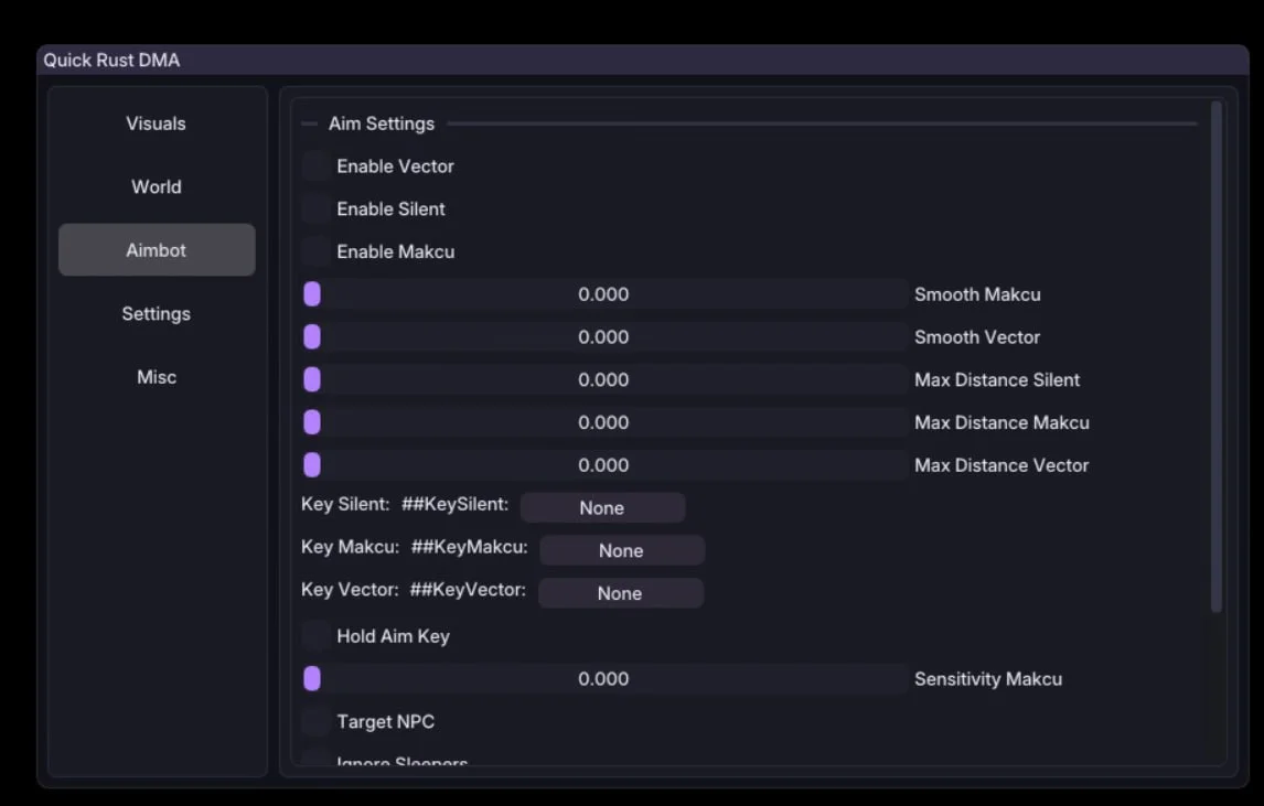• EnableVector, EnableSilent, EnableMakcu — включение разных типов прицела/aim-assist.