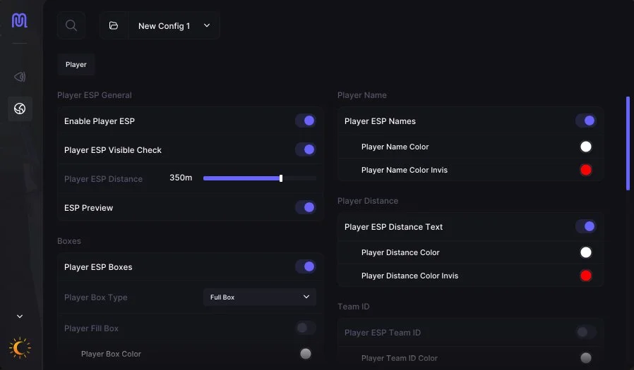 • ESP — отображение игроков: ники, дистанция, боксы, скелеты, видимость