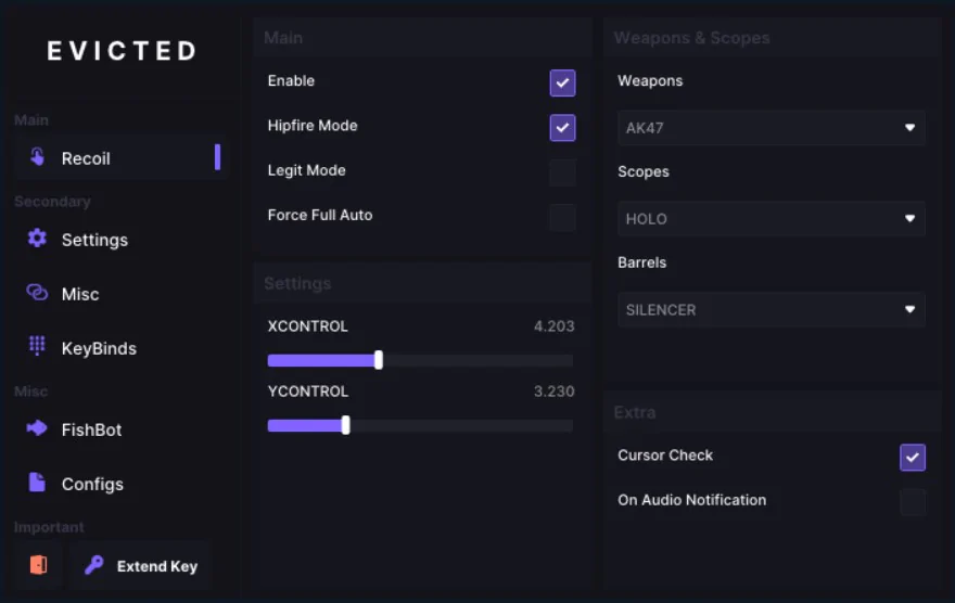 Макросы для Rust – это не просто набор команд, это инструмент, который позволяет вам максимально эффективно использовать ваше оружие. Макрос Evicted разработан с учетом уникальных особенностей игры, чтобы предоставить вам значительное преимущество. Одной из главных возможностей макроса является уменьшение отдачи оружия. Теперь вы сможете точно контролировать свои выстрелы даже в самых интенсивных схватках.
