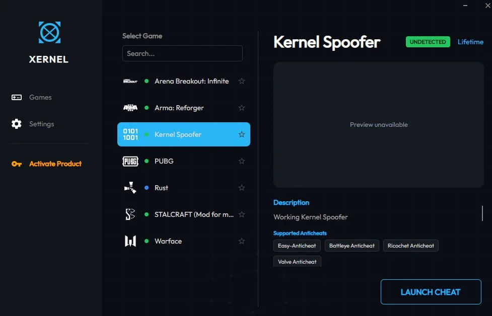 • Приватный спуфер Xernel обеспечивает стабильную подмену идентификаторов, защищая ваш аккаунт и позволяя продолжить игру без