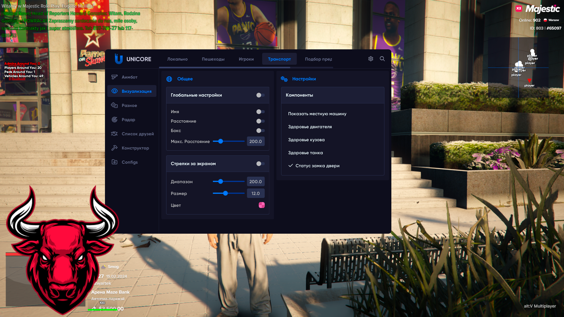 UNICORE - один из топовых провайдеров приватного ПО для различных игр. Данный софт на GTA V, alt:V , зарекомендовал себя с лучшей стороны, регулярные обновления, хороший функционал, много положительных отзывов и все это по доступной цене!