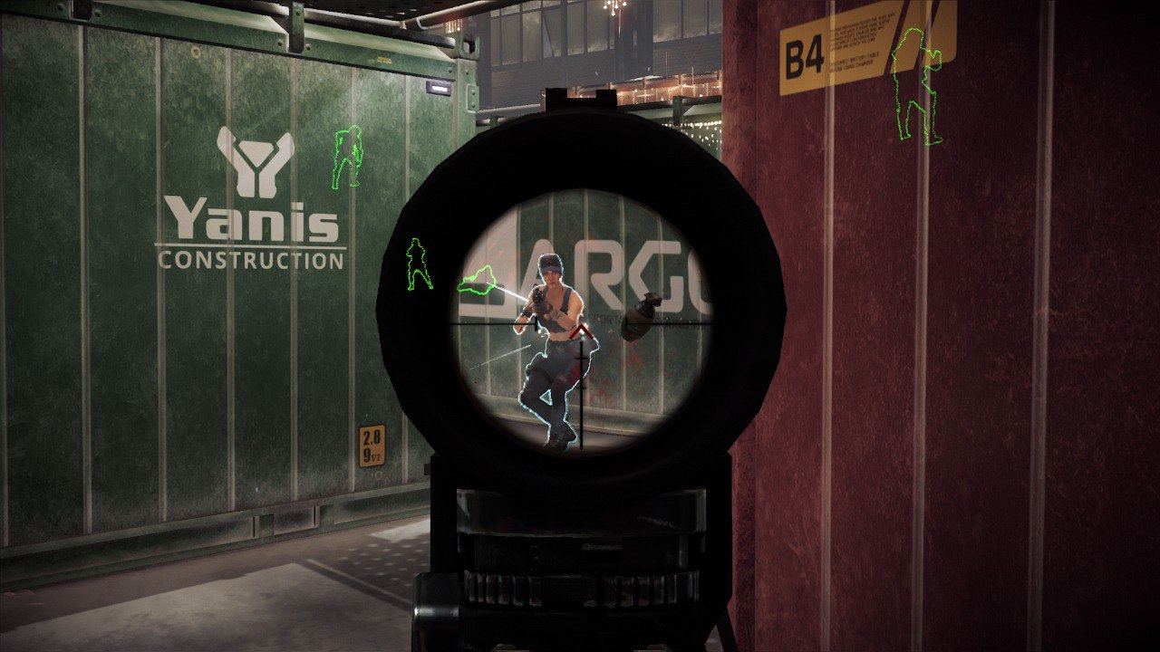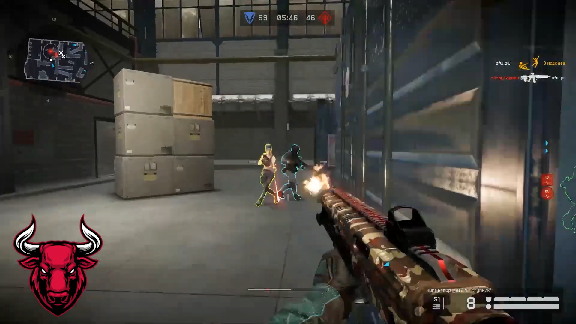 - Силуэты противника сквозь стены с цветом здоровья, при наведении прицела на противника, цвет силуэтов меняется на холодные оттенки