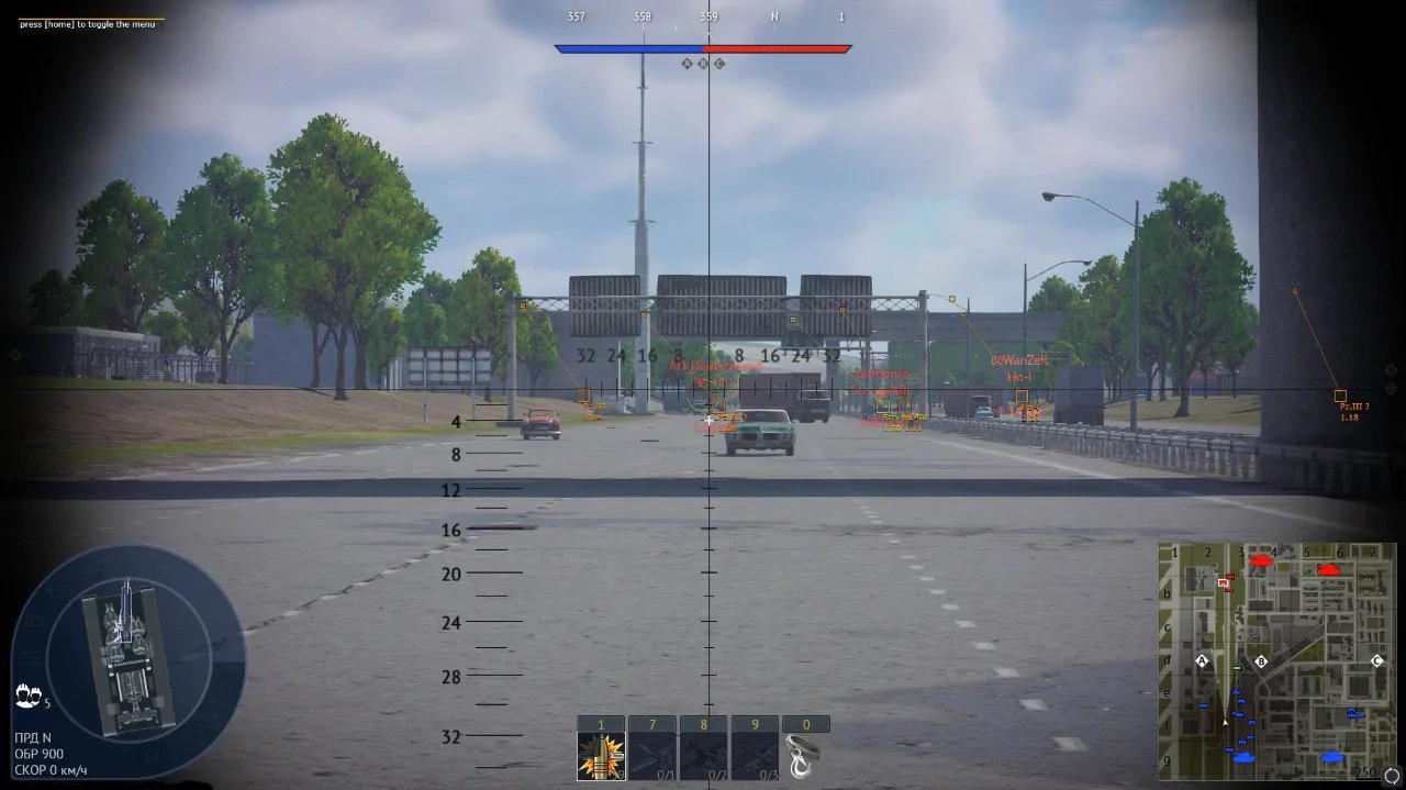 - Gunner cam from sight | включение вида прицеливания пулеметчиком